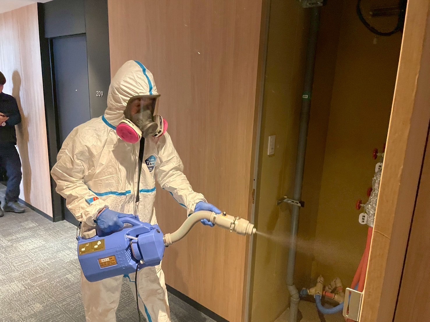 河川や下水から流れ込んできた水には多くの雑菌が含まれています。水が引いたからといって除菌消毒を行わずに放置をしてしまうと、雑菌が繁殖して感染症のリスクも高くなります。雑菌は床下だけではなく室内の壁や家財などにも強く付着しておりますので、「空間」と「物体」のダブルの除菌消毒作業が必要です。